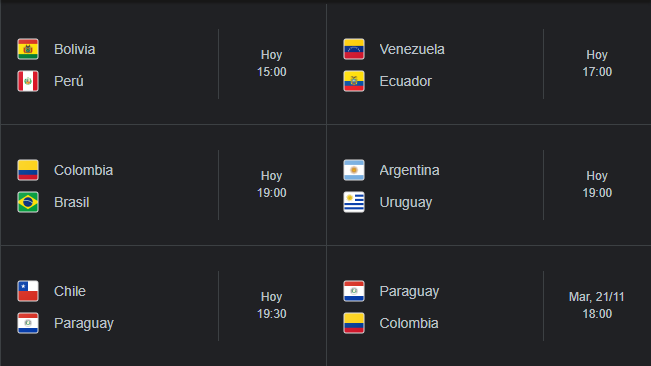 Estos son los partidos que se disputarán entre jueves 16 y viernes 17 de noviembre de 2023:
