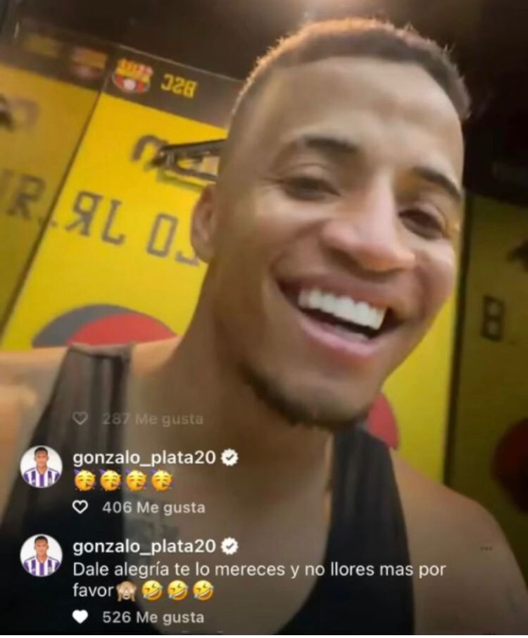 En un momento en el que se ve a un sonriente Castillo, Plata escribió: “Dale alegría, te lo mereces y no llores más por favor”, esto tras dejar varios emoticones de celebración.