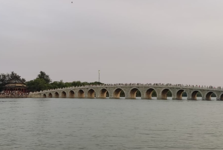 Cuando la luz del día cede, el Puente de los 17 arcos comienza a brillar. Une la orilla del lago con la isla de Nanhu y mide 150 metros de largo. Cada columna es coronada por leones de piedra, 540 en total, ninguno igual a otro. Su diseño replica al Puente Marco Polo, testigo del inicio de la Guerra de Resistencia del Pueblo Chino contra la agresión japonesa.