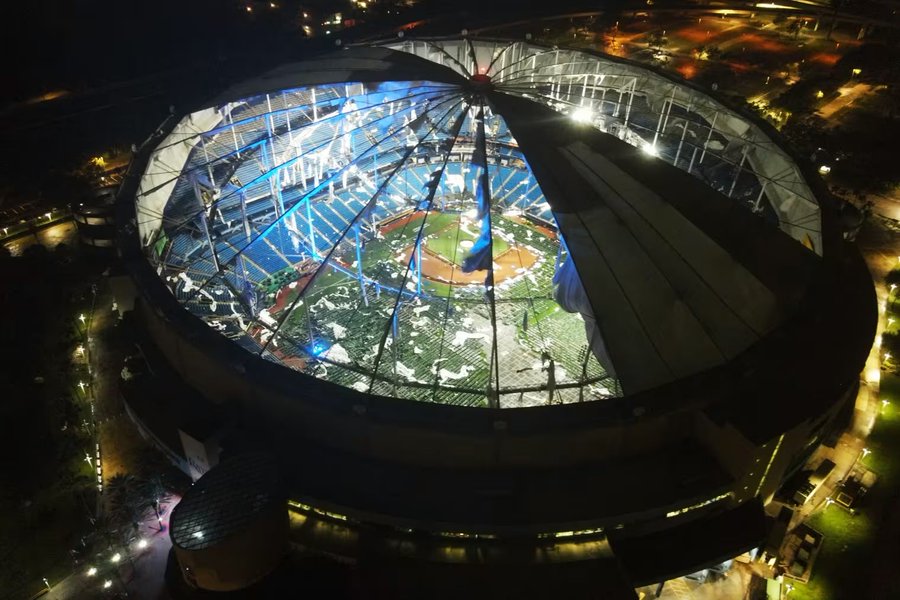 Hurricane #Milton hit Florida’s west coast, particularly Siesta Key Island near Sarasota, leaving at least two people dead. It destroyed 125 homes and cut power to over 2,500 households. In St. Petersburg, strong winds damaged the Tropicana Field stadium’s roof. The hurricane… pic.twitter.com/opL2pyAvos