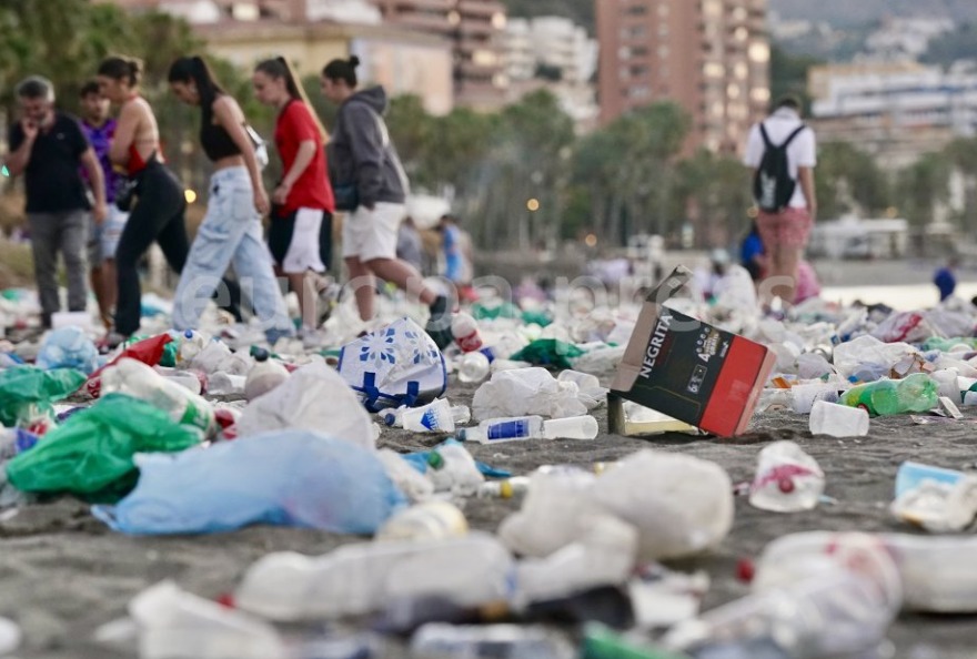 Tras las festividades en Málaga, las playas quedaron repletas de basura