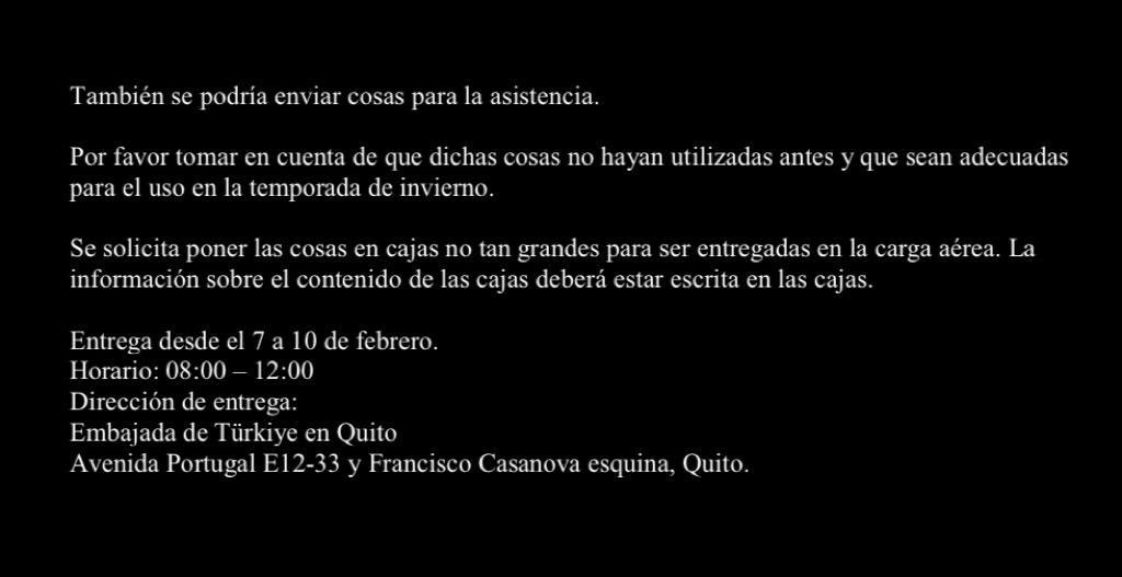 La Embajada de Turquía en Ecuador dio a conocer los canales que se abrieron para receptar ayuda tanto económica como en especies para los afectados del terremoto que azotó su país.