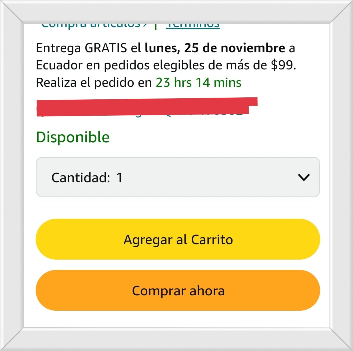 También deberá tener marcada la opción “Envío de AmazonGlobal Gratis”, lo que garantizará que el pedido llegue a una dirección en Ecuador.