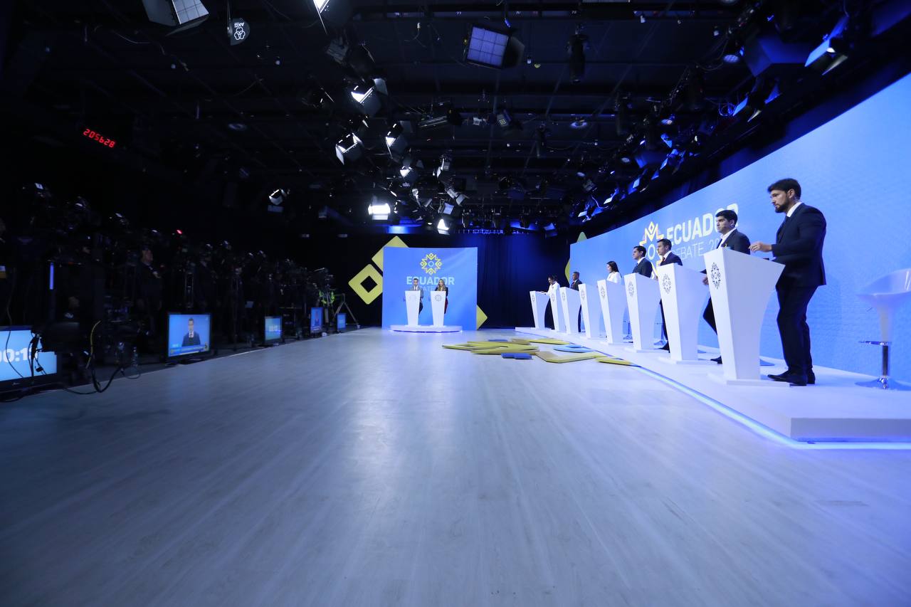 Tras el asesinato del candidato Fernando Villavicencio, del movimiento Construye, en el debate participan siete candidatos, ya que Christian Zurita, reemplazo de Villavicencio, aún no inscribía su candidatura para la contienda electoral. Se tenía previsto que se inscriba cerca de las 17:30 de este domingo.