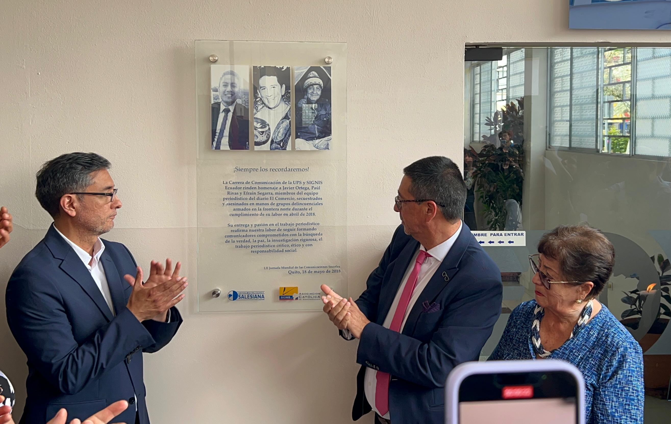 Al finalizar el evento se develó una placa en homenaje al equipo de El Comercio, asesinados por grupos delincuenciales en la frontera norte del país en abril de 2018.