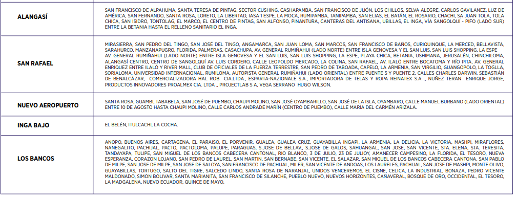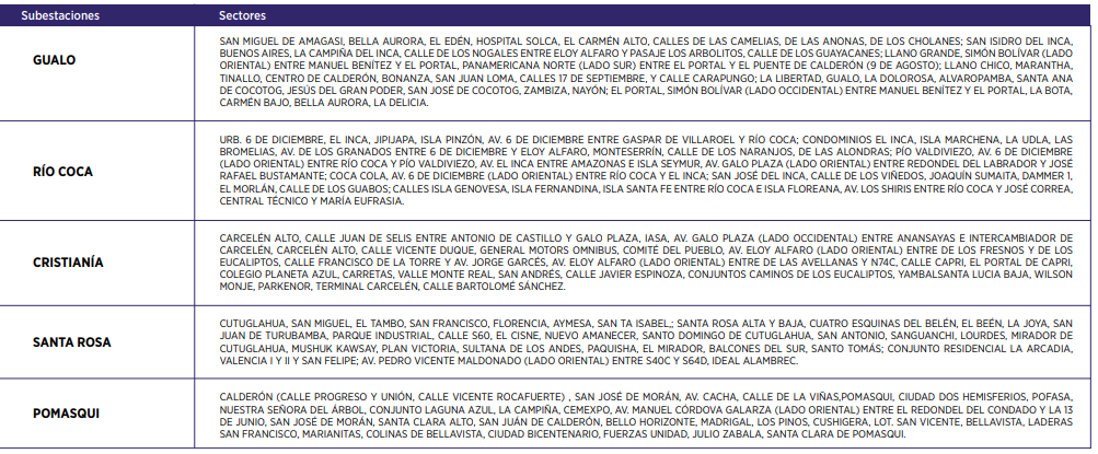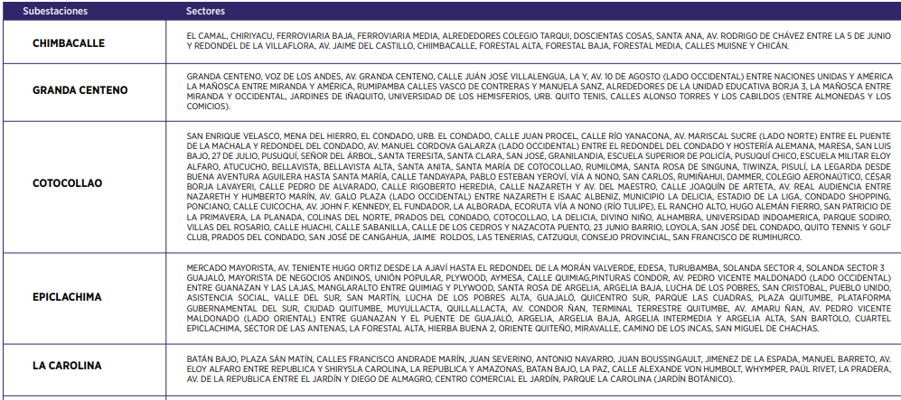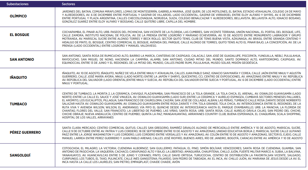 La Empresa Eléctrica Quito (EEQ) presentó el cronograma de cortes de luz para este miércoles, 13 de diciembre de 2023. Aún se mantienen los cuatro horarios distribuidos entre las 10:00 y 18:00.