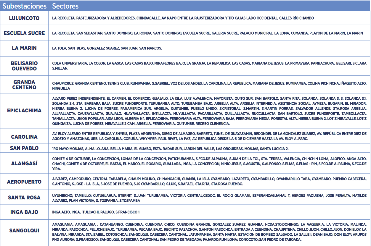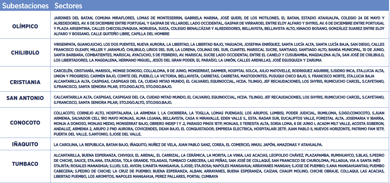 Estos son los horarios para cortes de luz en Quito este 20 y 21 de noviembre