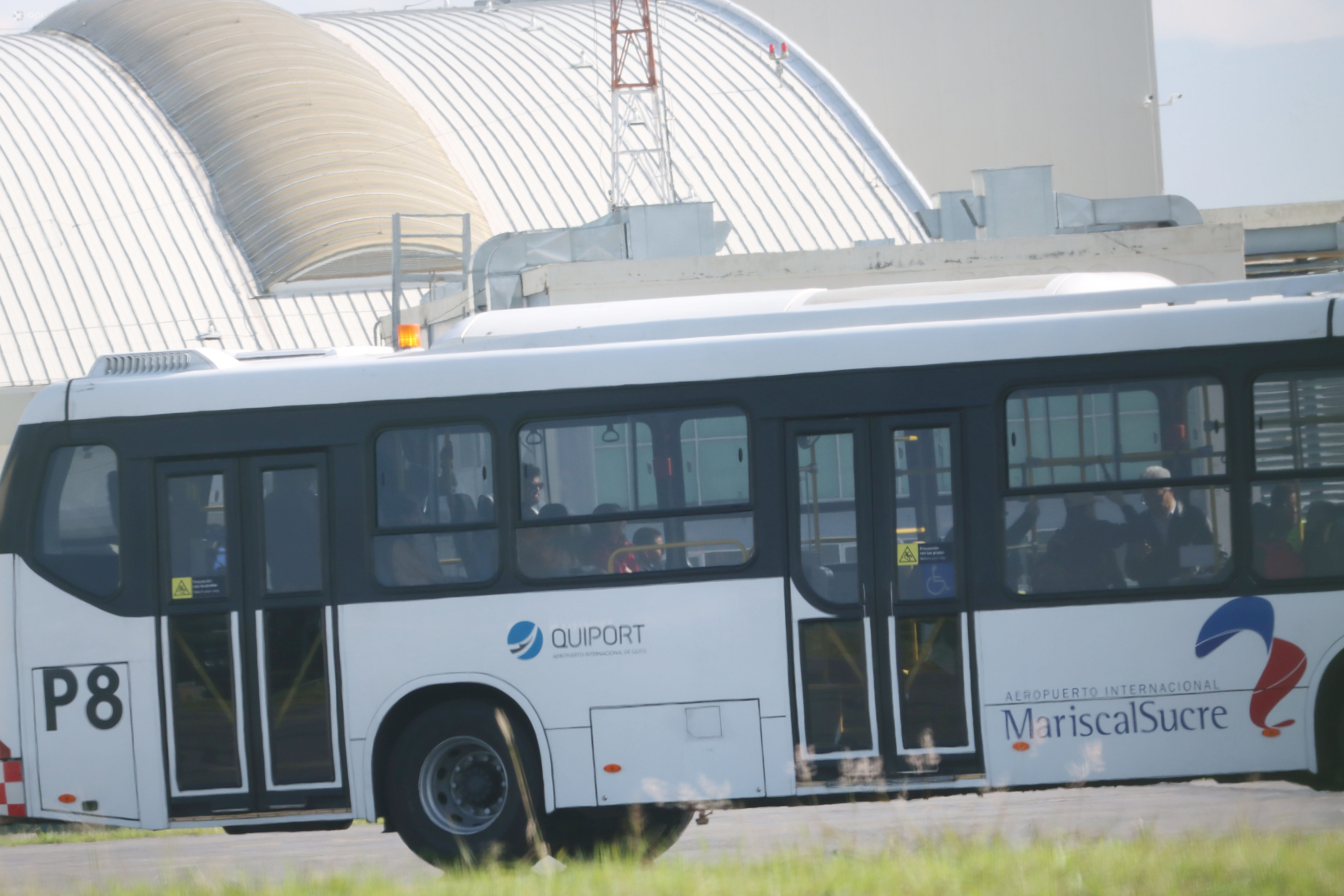Las imágenes fueron tomadas desde los exteriores por la Agencia API y a estos funcionarios se los ve con sus maletas salir, desde la sala Protocolar, y abordar un autobús que los llevaría hasta la aeronave que los trasladara desde Quito hasta Ciudad de México.