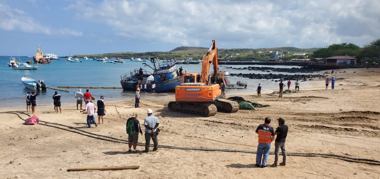 Los trabajos iniciaron con una verificación de la no presencia de remanentes de combustibles y aceites. Con ayuda de maquinaria pesada, se logró varar la embarcación en la playa de Barrio Frío, para su posterior destrucción controlada.
