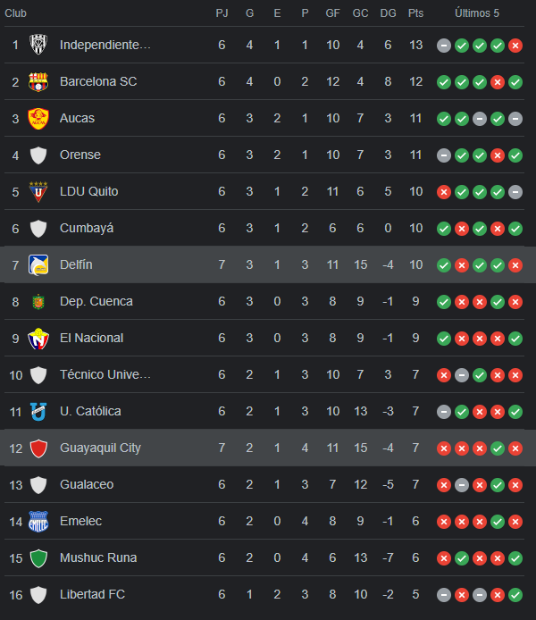 Tras seis minutos de adición las cosas no cambiaron y el equipo de Guayaquil se hizo con la victoria dejando así la tabla de posiciones: