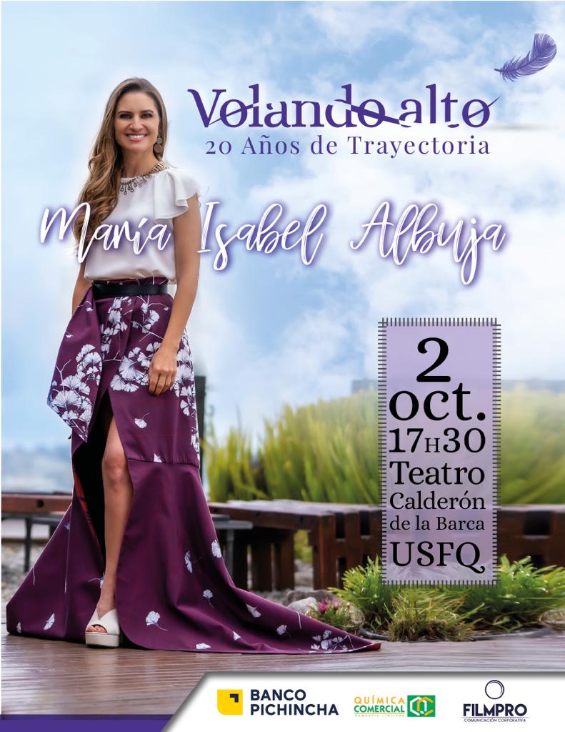 Volando alto es un recorrido por los 20 años de carrera de la cantante María Isabel Albuja, en los cuales ha profundizado en la interpretación de géneros musicales diversos y ha perfeccionado y fusionado estilos que le han permitido aportar a todo lo que canta una sonoridad única y muy personal.