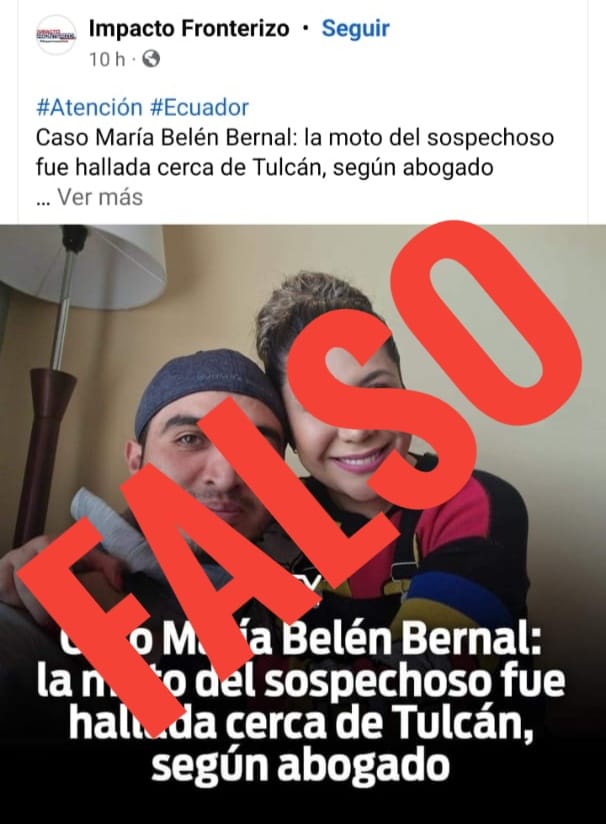 El primer hecho desmentido fue que la motocicleta de Germán Cáceres, pareja sentimental de María Belén Bernal, fue encontrada en la localidad de Tulcán.