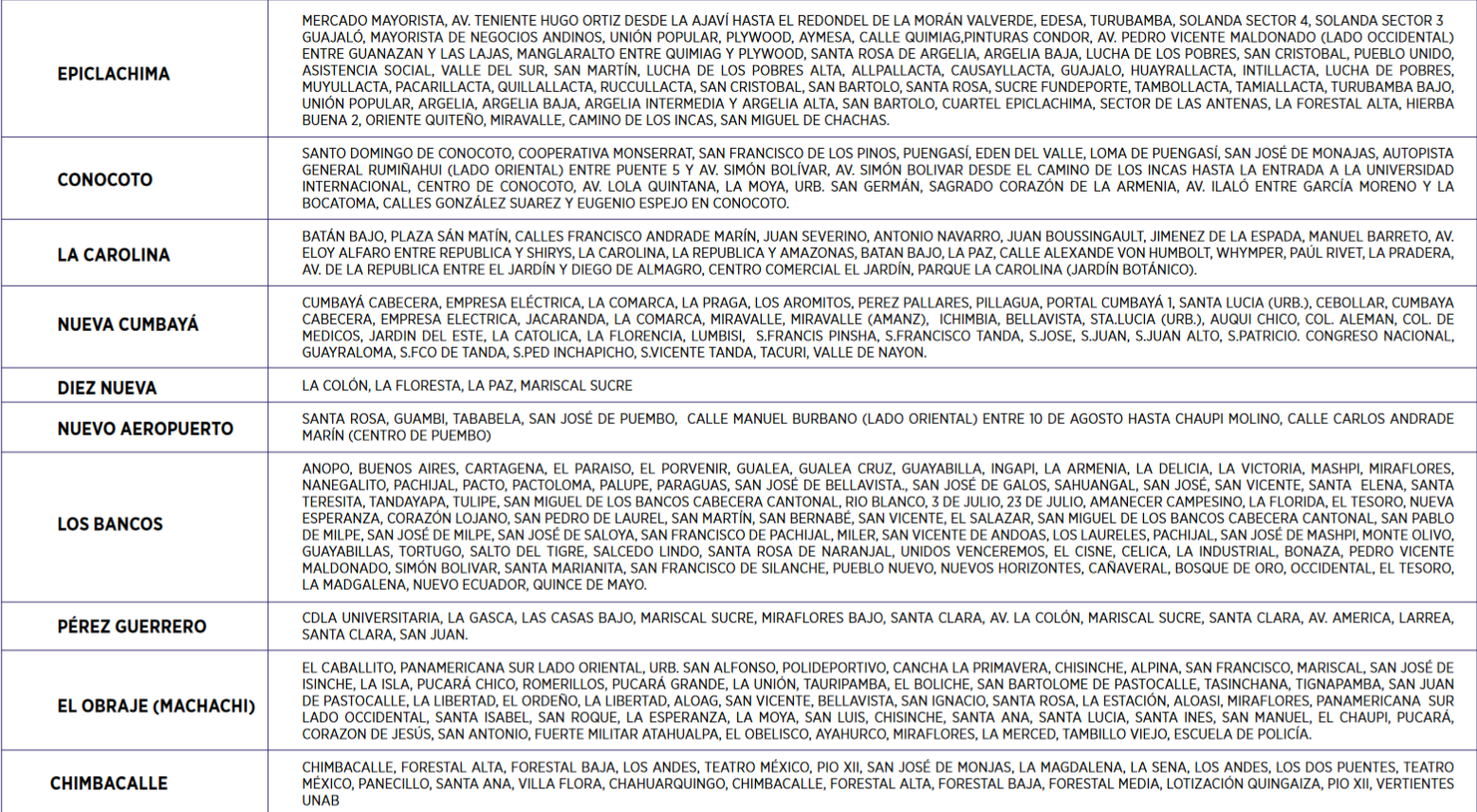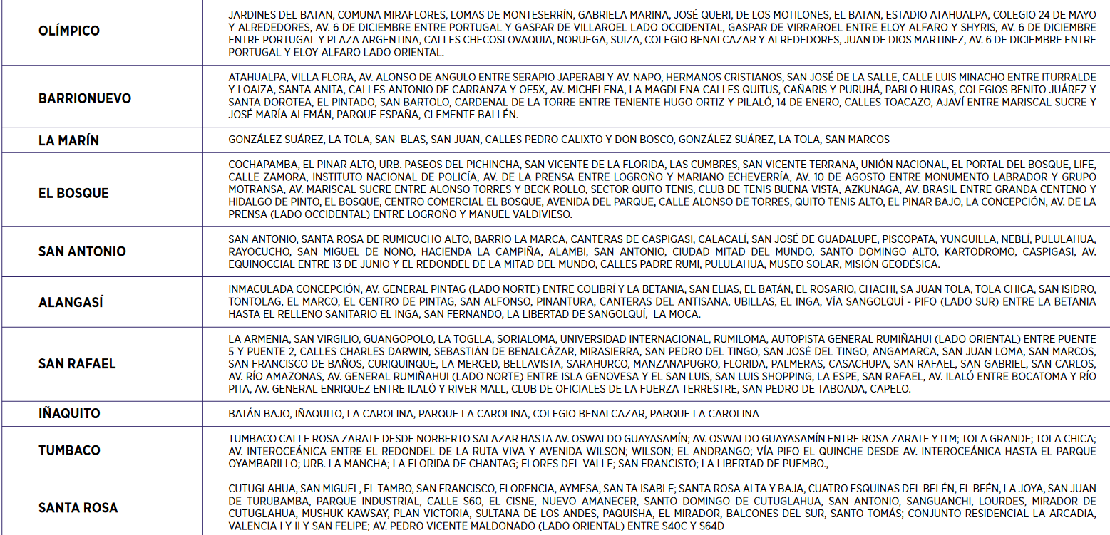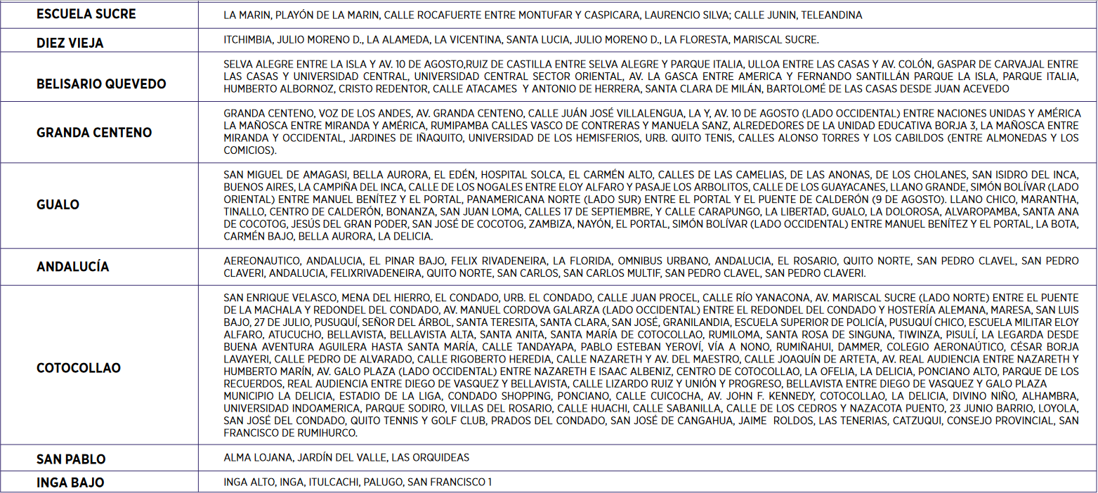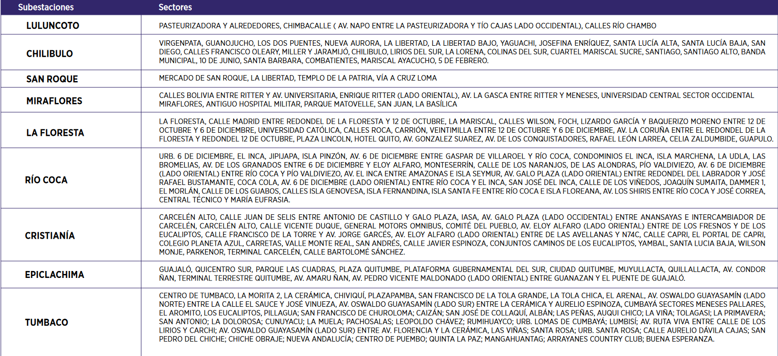 Quito tendrá dos horas y media de suspensión de energía este 27 de abril.