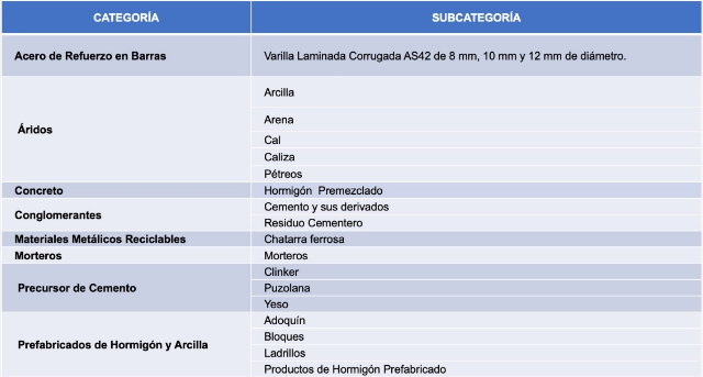 Según el documento, las autoridades aseguran que estos materiales fueron seleccionados tras un exhaustivo análisis en mesas técnicas de trabajo interinstitucional. Se espera que con esta decisión se beneficie e impulse el sector de la construcción en el país.