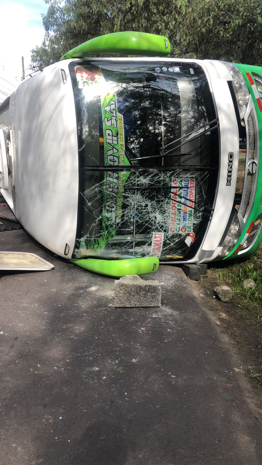 Un volcamiento en la vía a Cumbayá, sector EL Cebollar, dejó como resultado 13 personas con politraumatismos.
