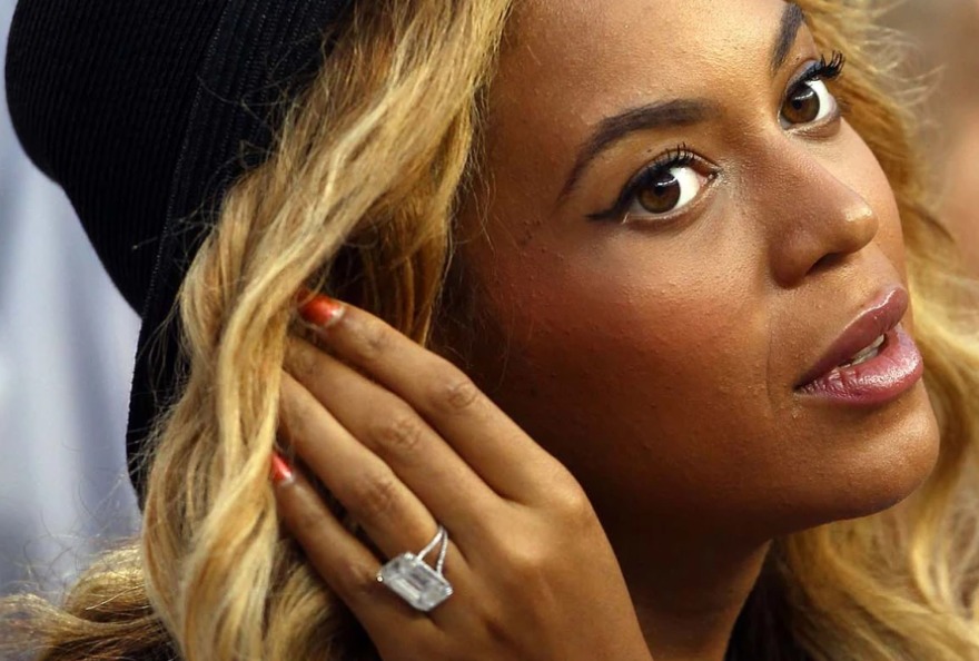 - Beyoncé porta un diamante esmeralda de 18 quilates, obra de Lorraine Schwartz, con un precio estimado de 5 millones de dólares.