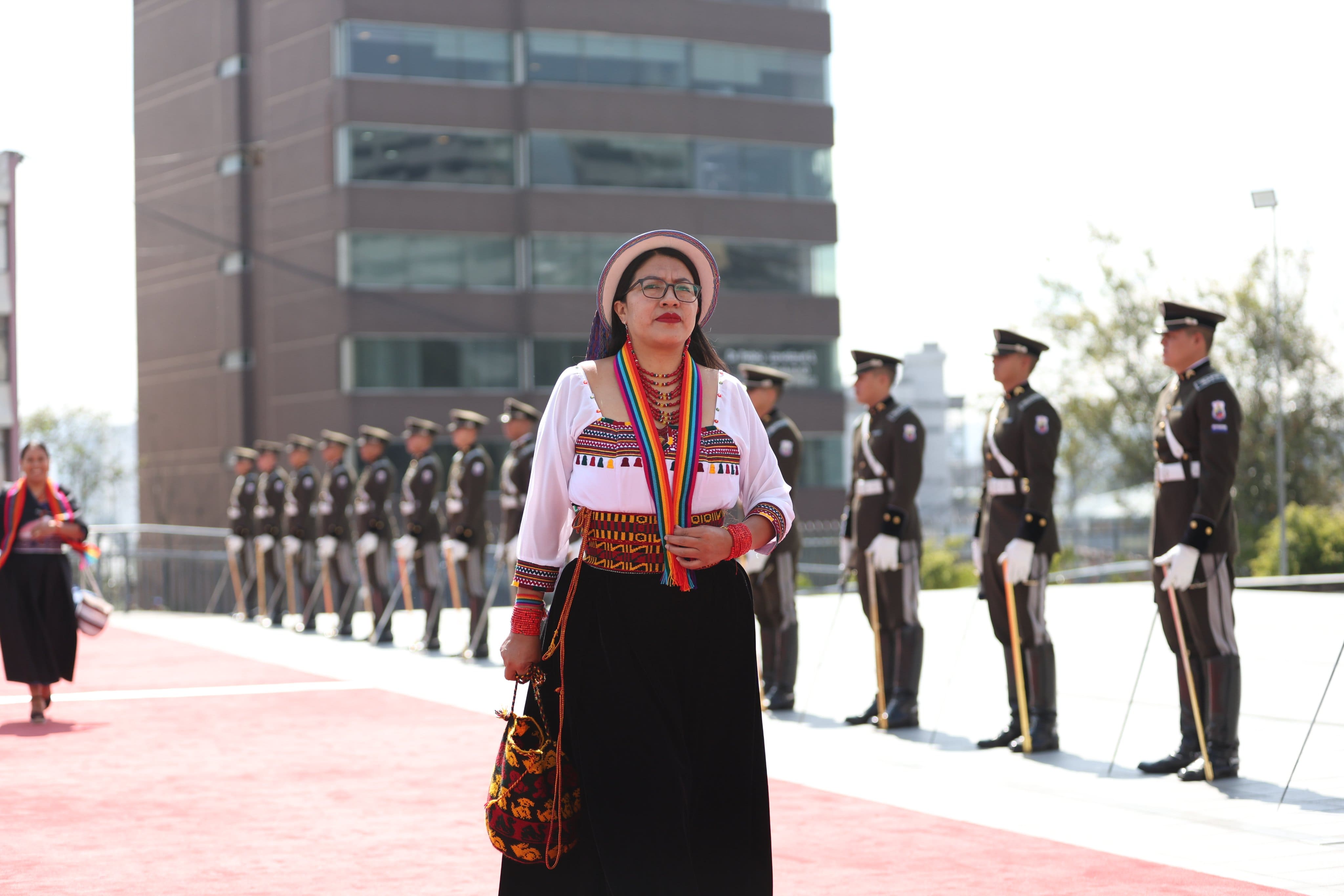 Los legisladores electos por Pachakutik destacaron sus raíces en la alfombra. Ponchos, faldas, collares, sombreros y otros accesorios con los colores de pueblos y nacionalidades no pasaron desapercibidos.