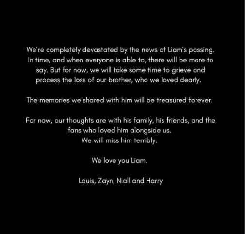 En un conmovedor comunicado, los integrantes de la banda británica indicaron que: “Con el tiempo, y cuando todos puedan, habrá más que decir, pero por ahora, nos tomaremos un tiempo para llorar y procesar la pérdida de nuestro hermano, a quien amábamos mucho”.
